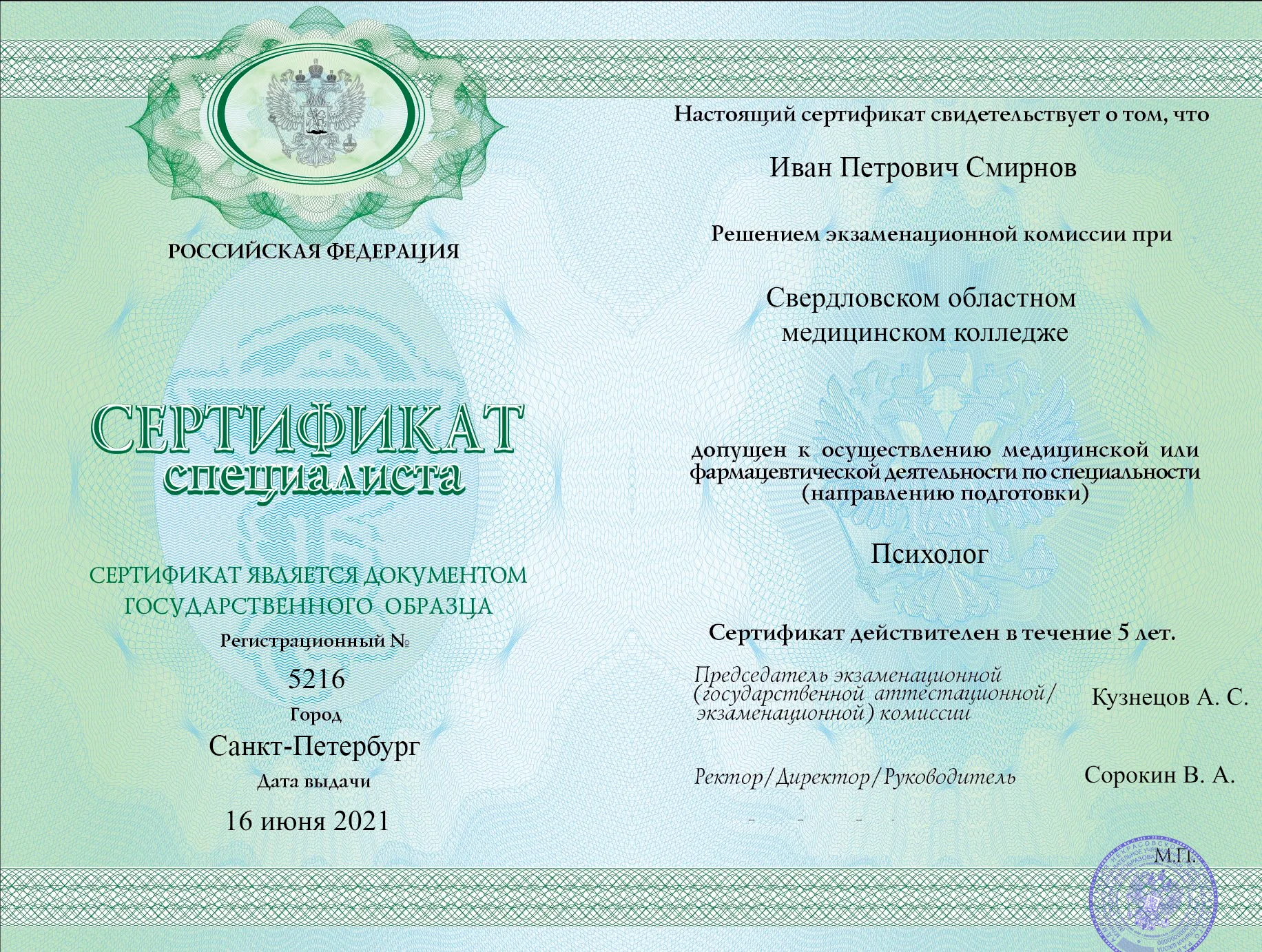 • 1995-1997 г. Специализация - клиническая ординатура на кафедре «Нервных болезней и Нейрохирургии» РостГму, сертификат специалиста по специальности – «Неврология» (с 1997г.)